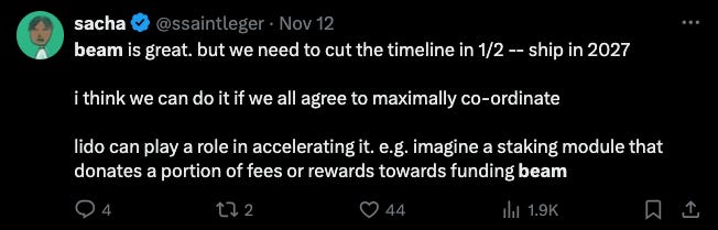 Back to Beam chain, while it’s compatible with a rollup centric future, there is a risk to Ethereum becoming just a stable data layer for rollups.