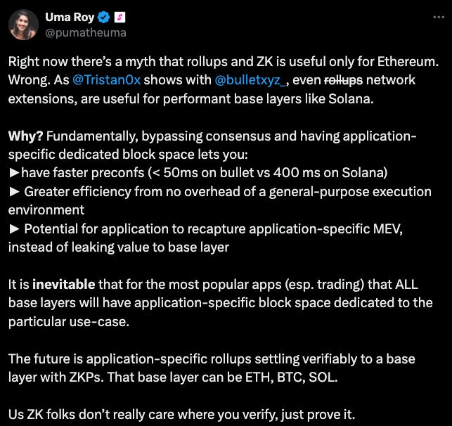 Whether it’s DAG based settlement or using Cairo VM as discussed in our Starknet post there are many more architectures to explore.