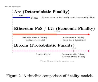 The Litepaper tends to flip from consensus math to a compliance statement. In several excerpts, it aims to present a case why Arc would be more compliant than Ethereum for institutional finance:
