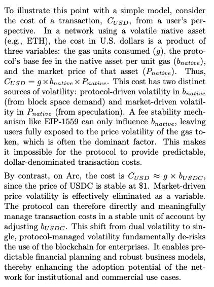 Of course Arc will use USDC as the gas token. The network will also use a modified version of EIP-1599 that uses an exponentially weighted moving averages for target utilization to minimize block-to-block volatility.