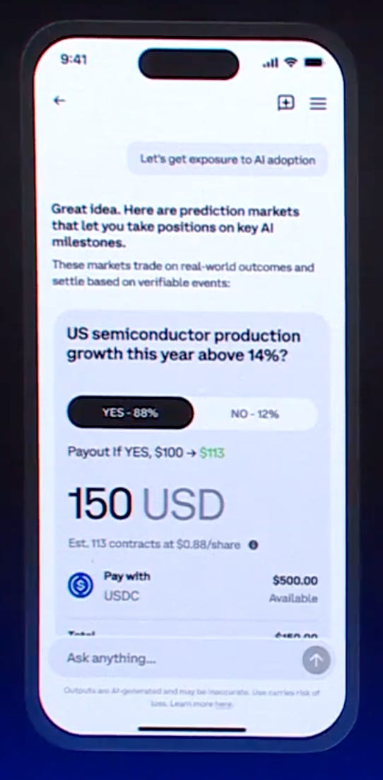 During the System Update call, Coinbase seemed to suggest that there were many good options to speculate on AI development through prediction markets or semi-conductor companies at a time when prediction markets are rampant with insider trading and many consider AI equities to be overpriced.