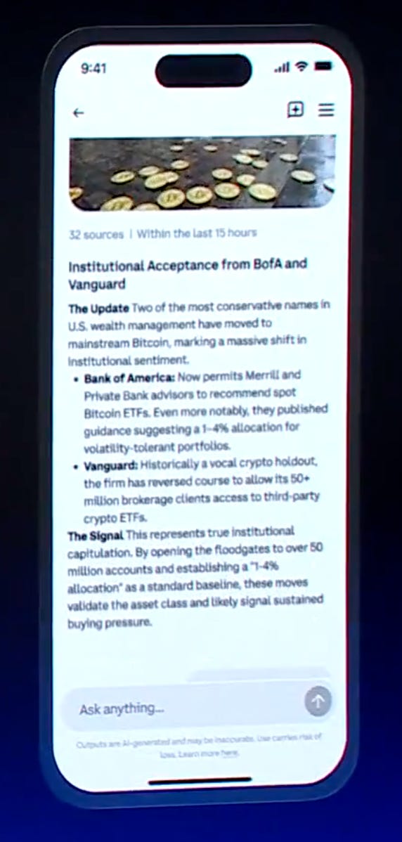 They built an AI advisor that (while not perfect) recommends exposure to crypto-native assets while showcasing how crypto is connects to the real world (through prediction markets and news).