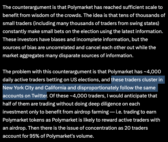 The other limitation is liquidity. Smaller markets are necessarily less accurate.