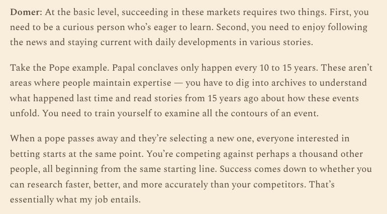 It’s unclear how much of this is driven by a cabal of Googlers running a prediction market side-hustle or full-time superforecasters that are better at interpreting AI news than I am.