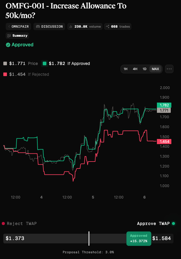 Consider this market where the Founder of Omnipair proposed to increase the monthly allowance to hire additional team members and cover infrastructure costs: