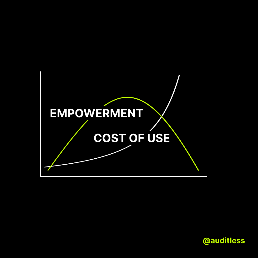 He also makes this image covering a concept I'd loosely described before in The Delegation Window and Limits to Vibe Coding.