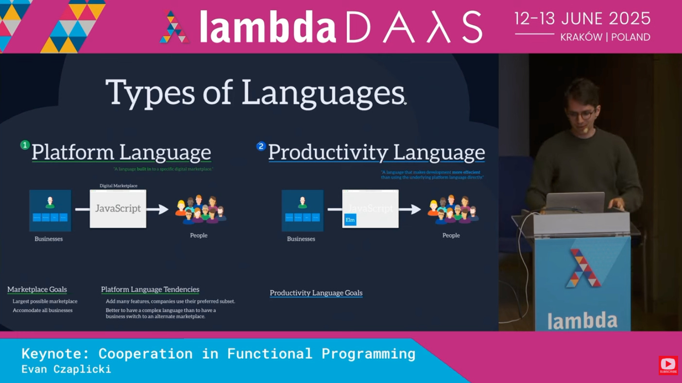 Evan Czaplicki spoke about the dichotomy of a Platform Language and Productivity Language in Lambda Days. Productivity languages should be opinionated but Platform languages don't get to run off and become Productivity languages overnight.