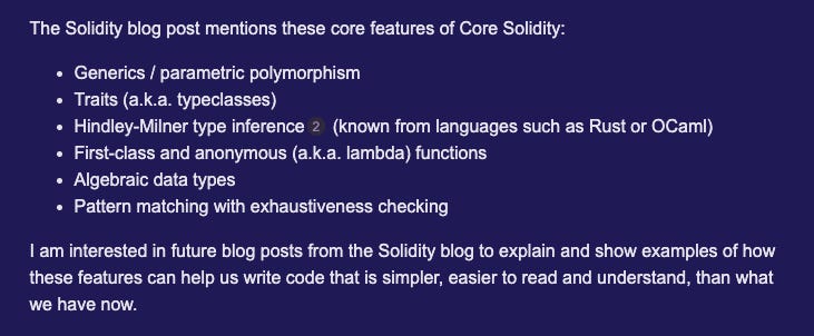 The Solidity team shared The Road to Core Solidity, a plan for how to evolve the world’s most popular smart contract programming language.