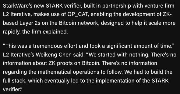 For Starknet and Eli, OP_CAT is the preferred path forward but even more universes exist to explore.