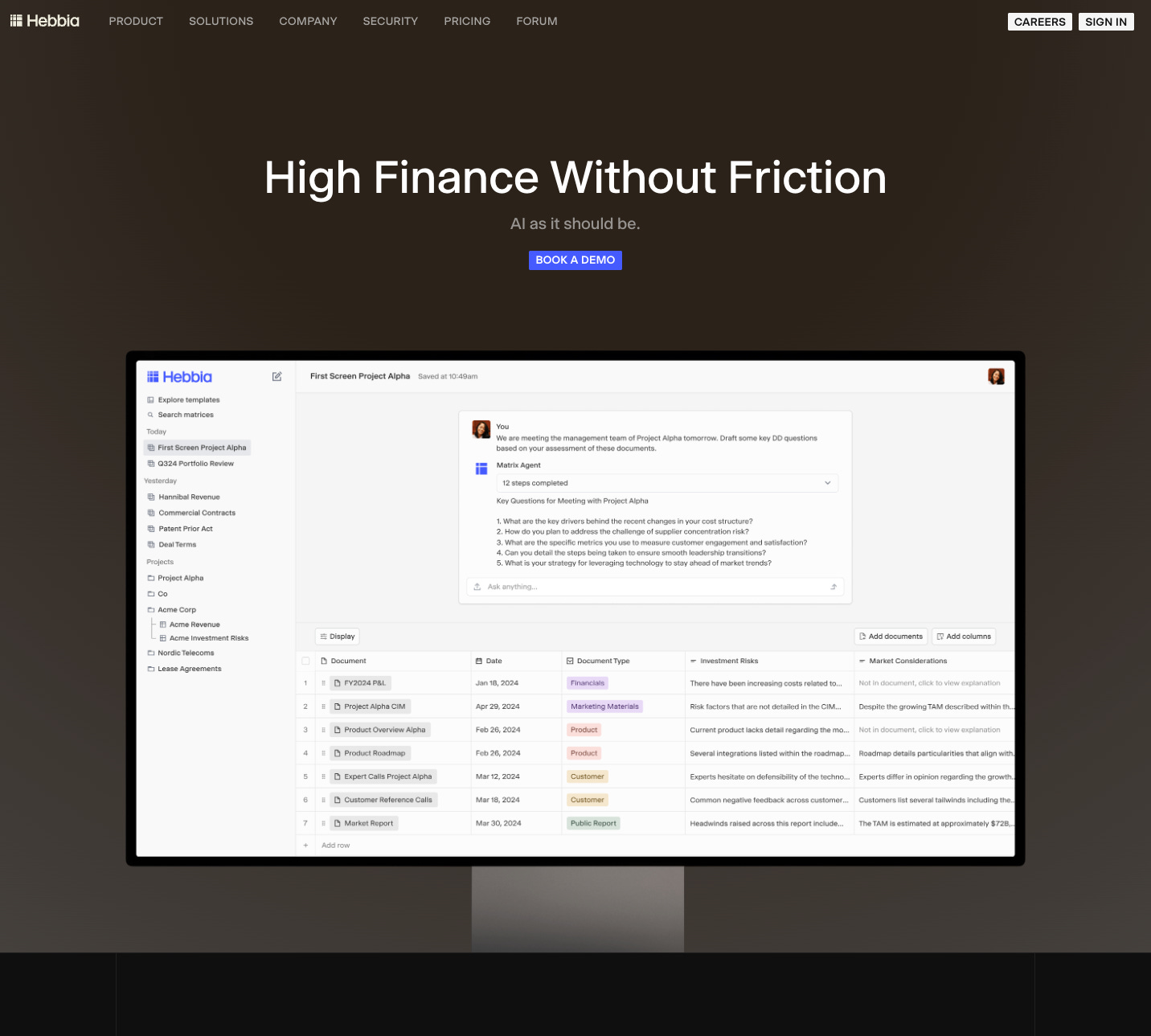 They largely rely on the same underlying models but deliver higher value through better interfaces and better agentic workflows. Hebbia‘s Matrix product is a good example.