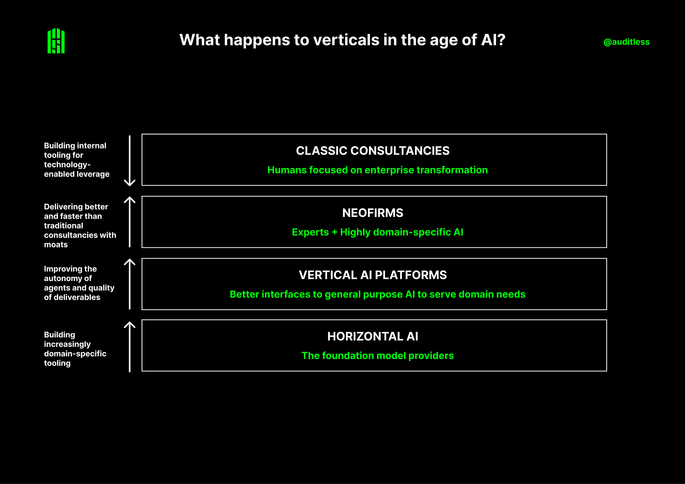 Neofirms also get to be more opinionated about proprietary data they absorb and work on while vertical AI platforms are investing in replicating similar interfaces to horizontal AI companies.